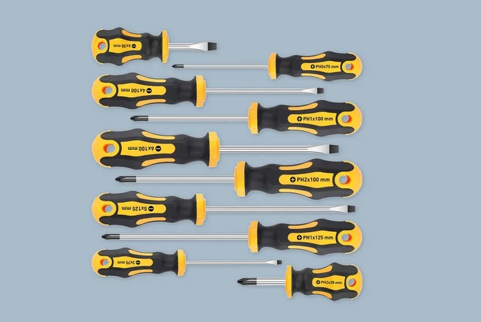 بطور قطع می توان گفت که پیچ گوشتی پرکاربردترین ابزار خانگی است. از سفت کردن درب کابینت ها گرفته تا نصب پریزهای برق و حتی باز کردن درب قوطی رنگ به پیچ گوشتی نیاز خواهید داشت. پیچ گوشتی ها در اندازه و نوع های مختلفی وجود دارند. از پیچ گوشتی 4 سو گرفته تا پیچ گوشتی تخت در اندازه های مختلف. به جای اینکه تکی پیچ گوشتی ها را خریداری کنید پیشنهاد می کنیم که ست کامل آنها را که شامل پیچ گوشتی تخت و چهار سو در اندازه های مختلف است خریداری کنید تا در هزینه ها هم صرفه جویی کنیم.