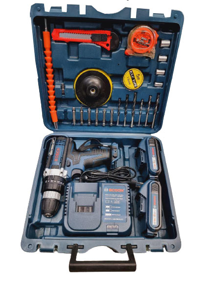 در پک دریل شارژی بوش مدل GWS یک باطری یدک نیز وجود دارد تا در مواقع بحرانی که شارژ باطری آن تمام می شود و به برق دسترسی ندارید بتوانید از باطری یدک استفاده کنید. این دریل که داخل یک جعبه محکم قرار گرفته است اقلامی همچون: سری پولیش، تیز بر، چسب برق، متر فلزی، رابط فنری پیچ بند و انواع سری های پیچ و مته قرار دارد.
