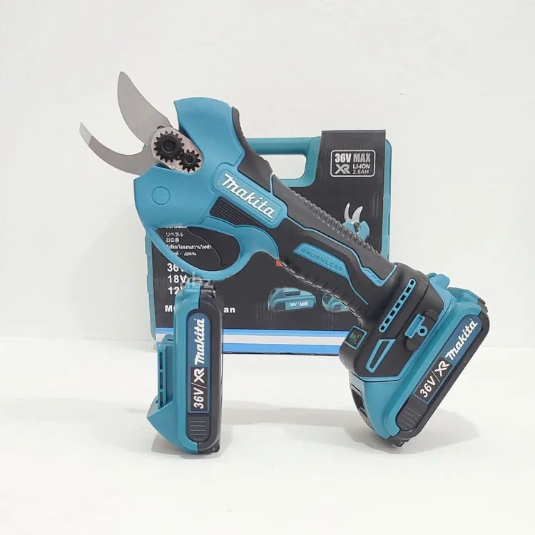 جدیدترین قیچی باغبانی شارژی که وارد بازار شده قیچی شارژی 36 ولت ماکیتا است که طرحی کپی از قیچی شارژی ماکیتا می باشد. هر چند که این قیچی در بازار به دو نام ماکیتا و ماکوتا به فروش می رسد اما هر دو اینها دقیقا یک نوع قیچی بوده و به سفارش روسیه و توسط چین ساخته شده اند. موتور پرقدرت این قیچی باغبانی شارژی 500 وات توان داشته و با یک باتری لیتیوم یونی 36ولت کار می کند. یک باتری زاپاس نیز همراه این قیچی شارژی است تا وقتیکه مشغول هرس کردن درختان هستید و شارژ یکی از باتری ها تمام شد بتوانید از باتری یدک استفاده کرده و کارتان را پیش ببرید. زمان تقریبی برای شارژ این قیچی شارژی حدود 2 ساعت بوده و با هر بار شارژ باتری می توانید حدود 300 برش انجام دهید. همچنین با استفاده از نشانگری که در پایین دسته قیچی قرار دارد می توانید میزان شارژ موجود در باتری را مشاهده کنید.