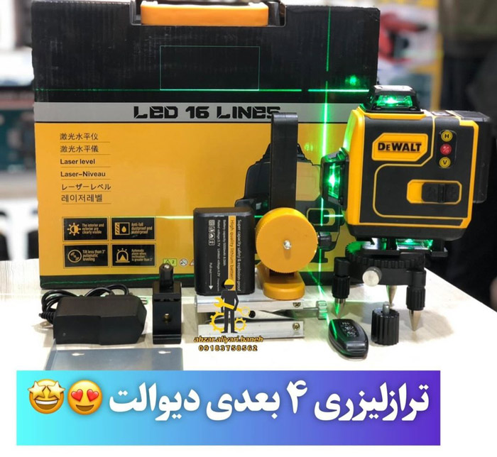 تراز لیزری دیوالت 360 درجه 4 بعدی نور سبز همراه سه پایه بلند مدل 4D-360Degree