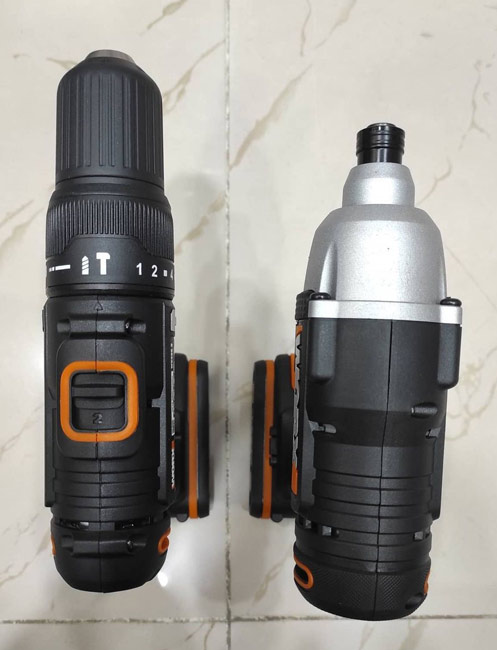دریل شارژی موجود در این پک مدل WX386.9 بوده، 20 ولت توان داشته و دارای باطری لیتیوم یونی 2 آمپر می باشد. گیربکس این دریل چکشی دوحالته بوده و به کمک این دستگاه می توانید 3 کار دریل، پیچ بند و چکشی را انجام دهید. سرعت چرخش مته نیز 400 تا 1500 دور در دقیقه بوده و سه نظام آن پلاستیکی بوده و قطر آن 13 میلیمتر است. این دریل شارژی قابلیت چپ گرد و راست گرد را داشته و همچنین دارای چراغ LED می باشد تا در محیط های کم نور بتوانید با آن کار کنید. این ریل مجهز به گیره آویز کمر بوده و در ارتفاع می توانید آن را به راحتی به کمرتان آویزان کنید.